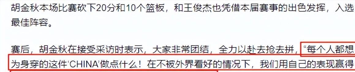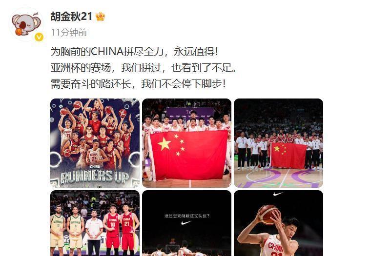 这次亚洲杯刚结束,胡金秋就发文表示为了胸前的CHINA拼尽全力,对他们来说永远都值得。