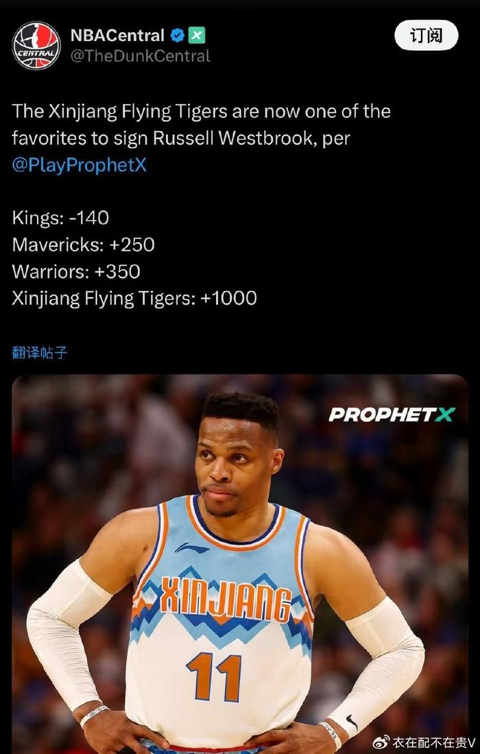 接下来我们再来说说威少,NBA新赛季即将来到,威少如今还没有找到下家,而根据NBA官媒的报道,威少很有机会来到CBA,按照NBA官媒的预测,威少加盟CBA豪门新疆男篮的可能性很大,再加上新疆男篮此前卖出了赵睿,这也让这一笔交易更加有可能,如果威少来到的话,新疆男篮成绩好不好另说,但是关注度肯定是十足的。